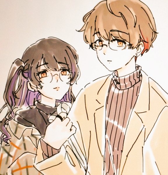 先生反射材フェアお疲れ様でした! サイバーっぽい衣装の研究職コンビもいいなっていうらくがきです夜道ビカビカしていけ〜〜〜🌟🌟🌟 #絵バンス #まめねことレオス