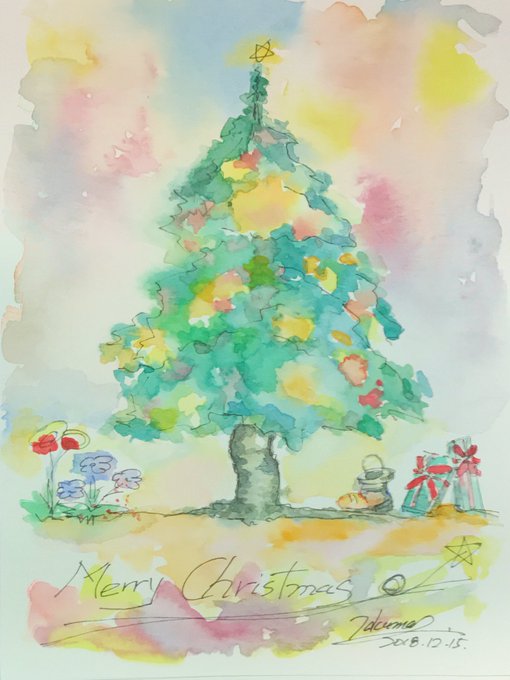 #ウィンザーアンドニュートンコットンマン を買ったので色を試しながら描いています。はなかなか難しいけど独特のトーンです。 #マイブーム #クリスマスカード #水彩画 #透明水彩 #水彩 #絵 #watercolor #painting