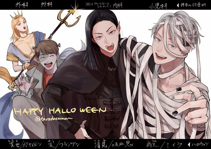 創作BLで🎃(清見と雨天と友だち) 右側二人はリバ。左側ふたりは戦友。 たまに出てきてた女子に名前がつきました。