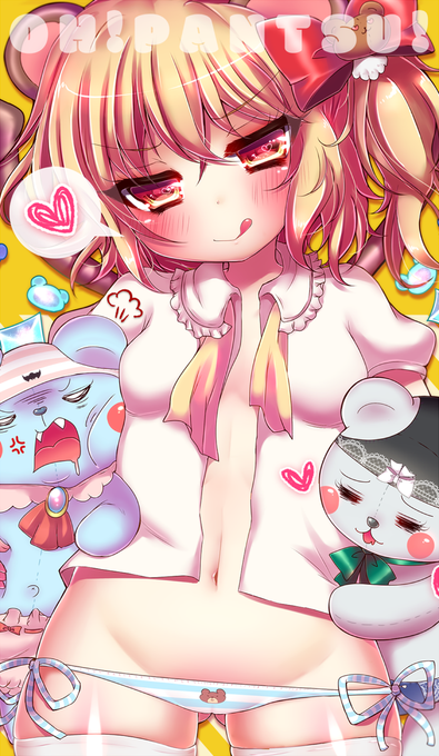 シマヒモクマパンローライズフランチャン。 | またさぶ野郎♡例大祭け14b #pixiv http://t.co/nacDnvkSHS 「東方夢と希望のぉぱんつ合同。」に参加しました~フランちゃんとクマさん描いたよ!