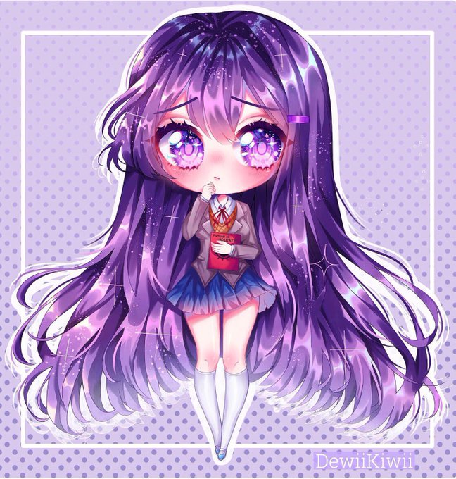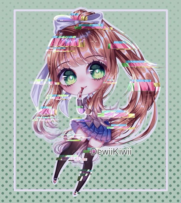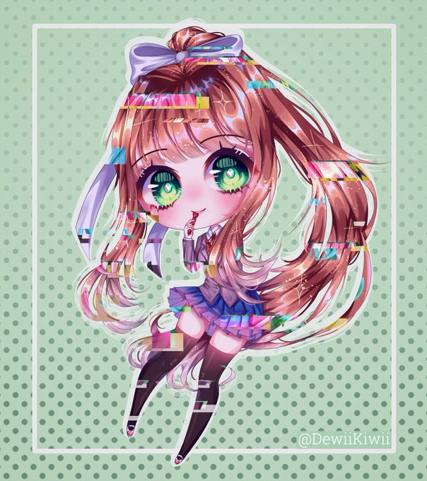 At last,, I finished this chibi on Monika from Doki Doki Literature Club.... 😖😩💦 I lowkey hate digital art hhhh—