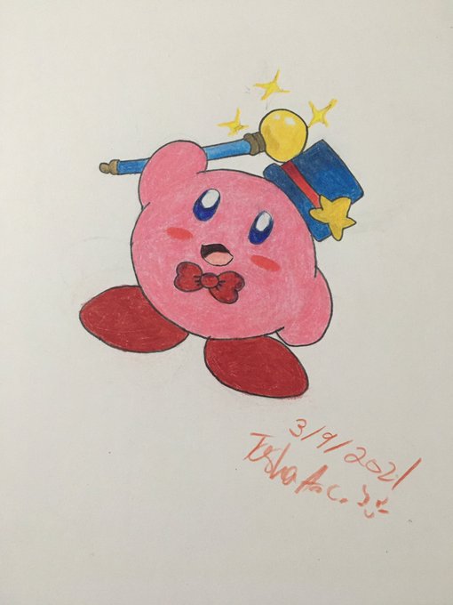 Here it is! Kirby magician! I should’ve used a different pink for him :/ and I messed up on one of the eyes... but I hope when people look at this that they smile☺️❤️