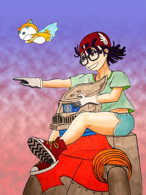 練習(ジブリアニメ風)。広角レンズの歪み補正をかけてからトレスすれば良かった。頭と身体の大きさのバランスが難しい。