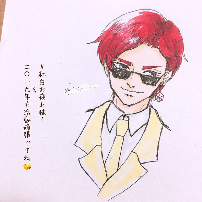 どわー!配信始まってから描いたけど間に合ったーーー!!2018年お疲れ様でした(`・ω・´) 紅白衣装です✌️ #天絵画 #天開司