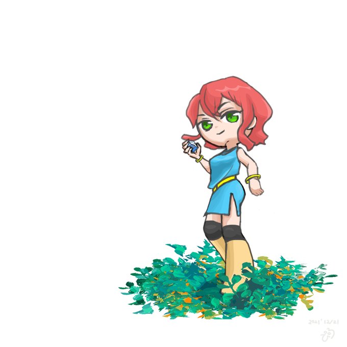 本日のお絵かき #イラスト 「くびれスリット絶対領域」 スリット描きたいっておもって洋服いろいろ迷走した結果天は赤い河のほとりのユーリみたいになった。 葉っぱは植物素材の作成に手をだしてみたけど設定難しい