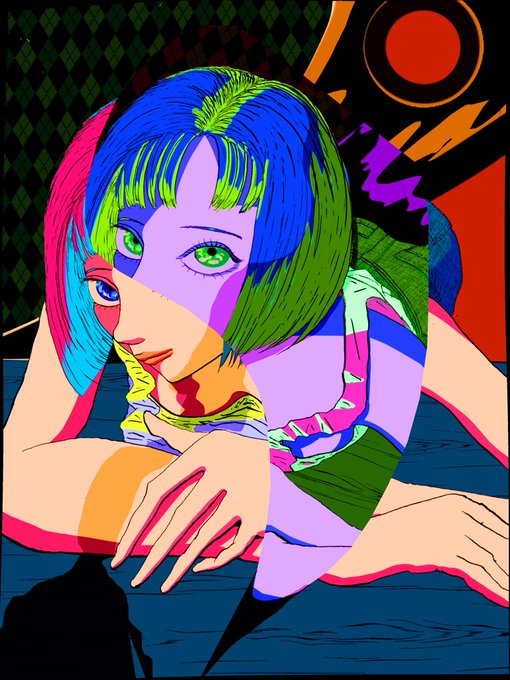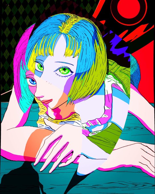 #オリジナル #オリジナルイラスト #イラスト #女の子 #可愛い #イラスト好きな人と繋がりたい #青 #赤 #黄色 #ショートボブ #サイケデリック #タンクトップ #アナログ #手書き #original #illustration #cute #analog #일러스트 #귀여워 #blue #yellow #red