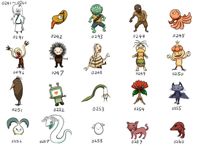 241~260まで。 妖怪のようなものもちらほら… このシリーズの中から妖怪絵にして描いているキャラもいます。