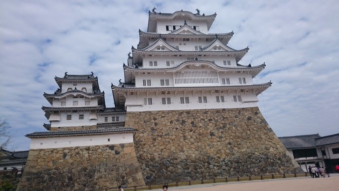 タイムリー昨日見に行ってきました姫路城!池田輝政の紋もしっかり見て参りました。桜も見ごろで景色も良いし、改装後だから白くて美しかったです。PC内にはちゃっかり城娘も家にいます。来てくれてありがとう可愛い。 #城の日