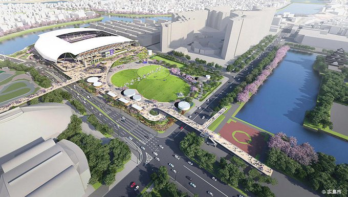 広島市(119万人)と松山市(51万人)の街中一等地のお城の側の広場の計画。ちなみに松山市が誇る歴史的景観の公園の下には江戸時代以降の遺構しかない模様😌