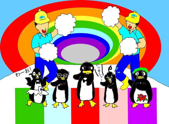 お待たせしました!当水族館名物のペンギンショーが始まります!盛大な拍手と声援をおねがいします!