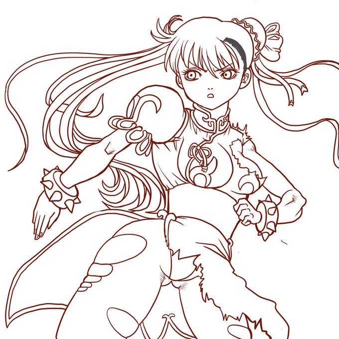 ラフ、線画、着色アップします。個人的には線画が一番マシにみえます。着色も練習しなくちゃ。#ストリートファイター