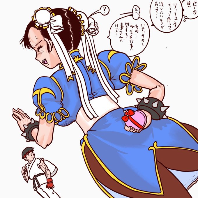 もう一枚バレンタイン関連のイラスト描いたので投稿します。春麗さんはツンデレというよりハニカミ屋さんでしょうかね?#ストリートファイター