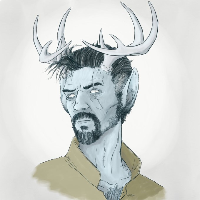 @Arcane_Souls Than Athos here is my druid in a dnd game I play. He's an anxious bean with 924893 concerns and a fierce protective streak. He works as a doctor when not being nearly killed in our games, and tries very hard to understand and connect with people, even if he's not very good at it.