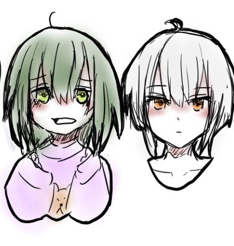 緑髪がこころちゃんで、白髪の子がうつつちゃんです。