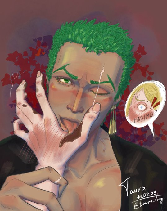 Санджи делает шоколад на 14 февраля для всей команды и учитывает предпочтения каждого, и конечно же помнит, что Маримо не любит сладкое. Горький шоколад с привкусом кофе мечнику явно понравился)