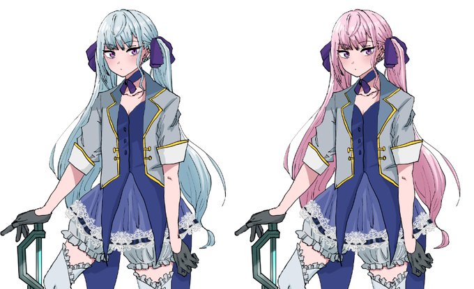 何かで使いたい女装男子…!髪色で悩んでる…!最初青髪にしたけどピンク髪好きだな…って変えてみたらピンクもアリな気がして…青のほうがまとまりはある感じするけど…