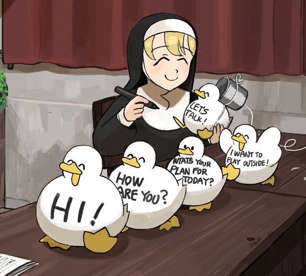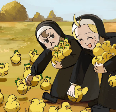 @hyxpk oh boy. will sheep nun actually try to dispute hungry nun over this? because hungry nun seems to be playing the devil on frog nun's shoulder on this one.
