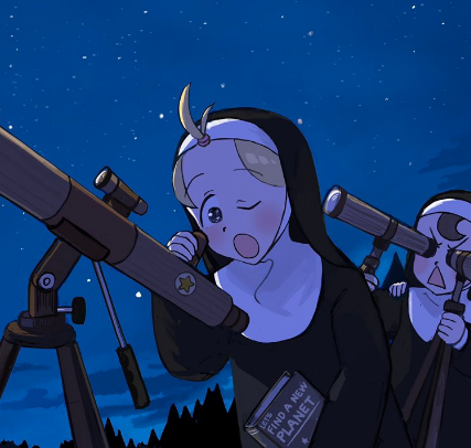 @hyxpk good to see them finally awake enough to be enjoying star nun's favorite hobby. and while it's no comet watching, i'm sure she still appreciates the company.