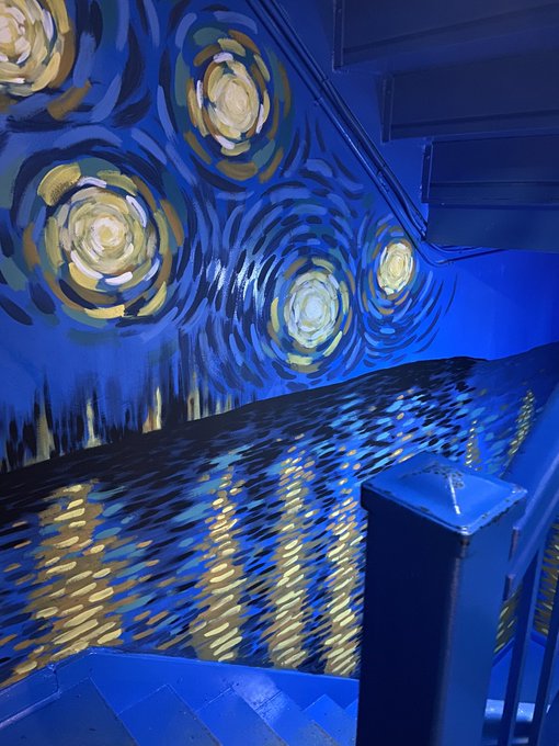 Getting some stars and swirls down today ✨ #VanGoghImmersive #GrandRapids #VincentVanGogh