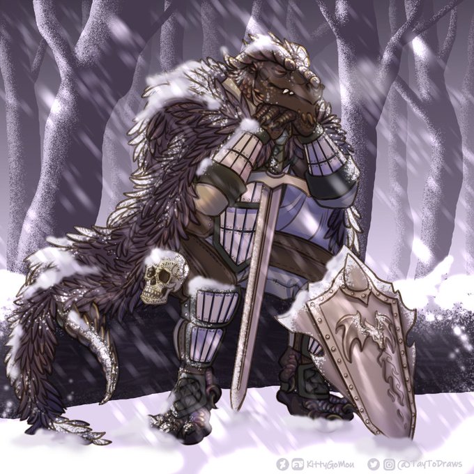 Our #paladin taking a nap during his watch. #dragon #dragonborn #dnd #dnd5e #dungeonsanddragons #pathfinder #fantasy #rpg #ttrpg #digital #art #winter #snow
