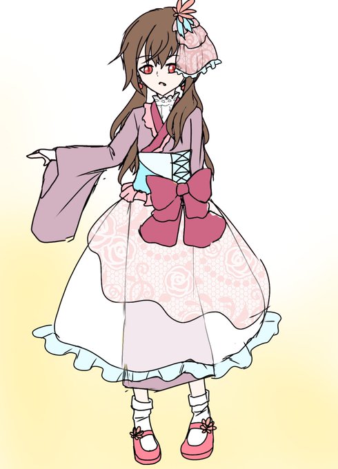 はい1つ目! なえリクエストの和服ロリータ風アラモちゃん!!!!柄が2パターンあるぞ! リプ欄にゴスロリ風バージョンも置いとくよ 色変えただけだね、うん https://t.co/tADvL1IHLL