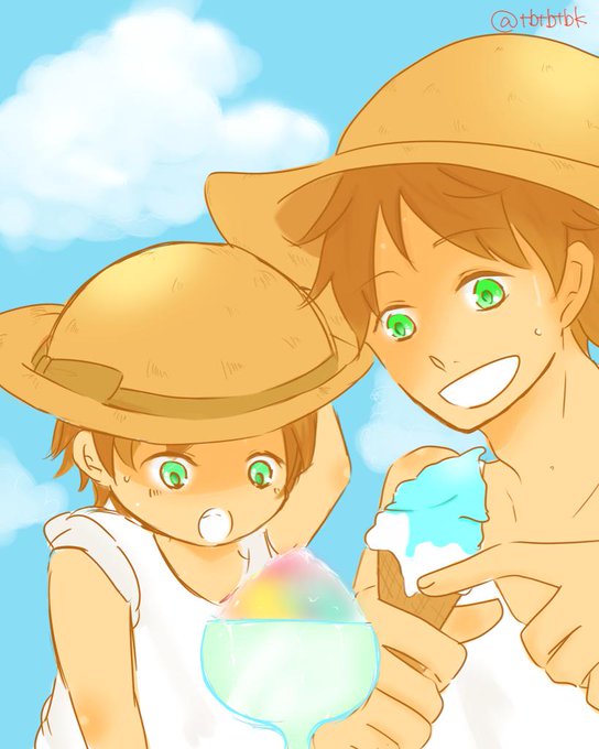 #親分子分版ワンドロ60分一本勝負 【遅刻組】 お菓子 かき氷とあいす 「な、なんかいろんな色だぞこれ!」 「はよ食べな溶けてまうでー!」 ID入れ忘れたのであげなおし〜です