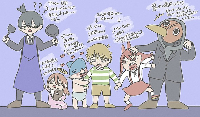 ちびきゃら🐥家族写真(?)😳💥 #チェンソーマン #ビームくんは5歳児