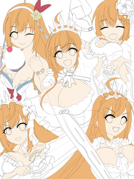 ⭐️TFの誰得裏話?1 最初それぞれ単体で描いて個人的に上手く描けたなって思うコッコロをZの法則に倣って左上(儀装束)、右上(正月)、中央(いつもの)、左下(プリンセス)、右下(水着)って配置にしてる