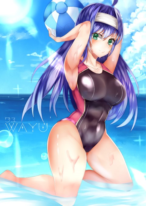 水着ワユ。実装ください。 (何気に二枚目は初出だったりする) #競泳水着の日 #FE