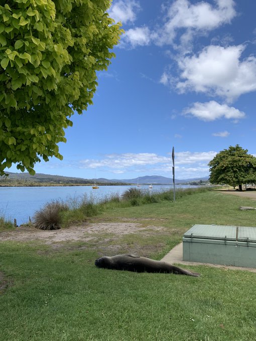 Good afternoon only to this elephant seal asleep under a tree next to an unphotogenic box