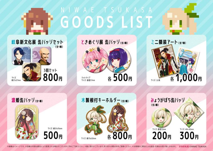 展示会のグッズに関して、やんわりアナウンスだったので改めて書いときます。 庭江のグッズは木製キーホルダー2種と缶バッジ1種あります😊 #岐阜新文化展 #岐阜