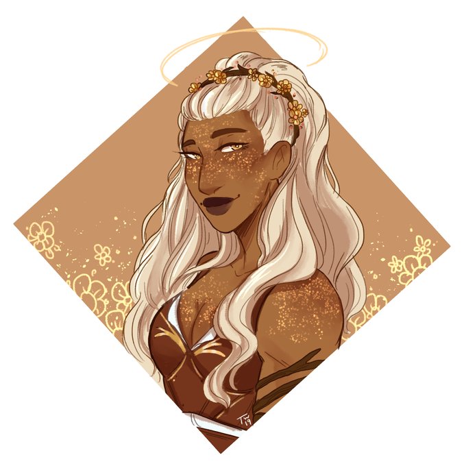 @ColorMeKels indulges me in my dice obsession so I draw her Earth Genasi Bard as a thank you!! (Left mine, Right is Kelsey's). Absolutely love the design of her hair ✨