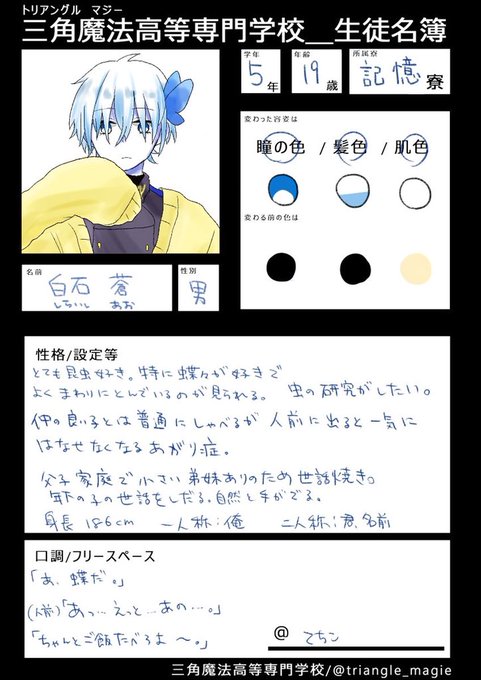 @triangle_magie 追加失礼します!虫好き蝶がとても好き君です🦋よろしくお願いします! #トリマジ_CS #トリマジ_記憶寮
