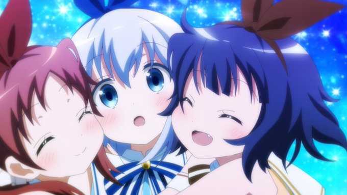 今日はリゼちゃんがひたすらに可愛かった!リゼ先生大好き♥ココアちゃんと千夜ちゃんの感情死んでる顔がそれでなお可愛い!とにかくてぇてぇ!来週も楽しみ! #ごちうさ #ごちうさBLOOM