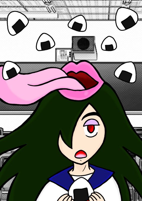 お米の日なのでおにぎりを食べる加賀子ちゃんを描きました。