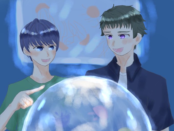 #冬組で夏旅行企画 【紬&丞】で参加してます! 冬組は暑さに弱そうなので涼しいところに行きそう、ということで水族館🐟🐠 密くんとか年下組へのお土産にぬいぐるみ買ってほしい〜 おこめちゃん主催ありがとうございます!!