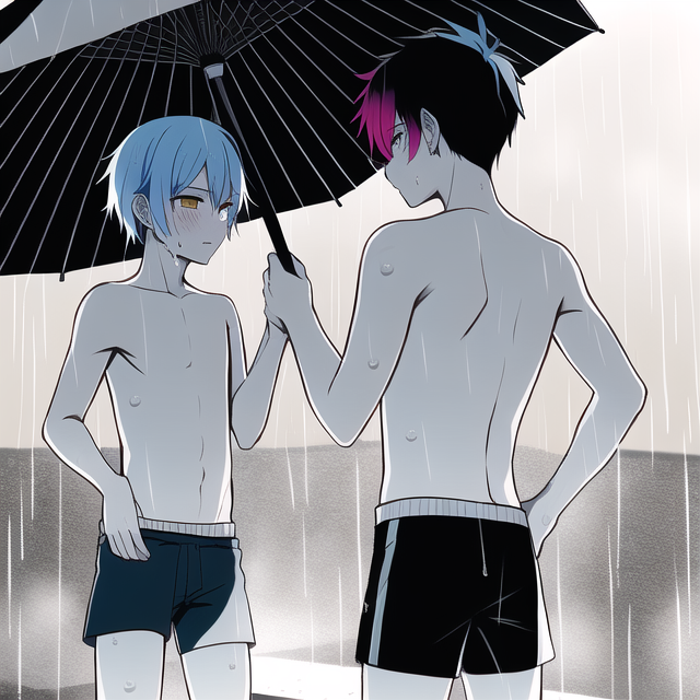 雨と雨傘と少年カップルは出会い物 エラー率も凄いけど #NovelAI #少年 #BL