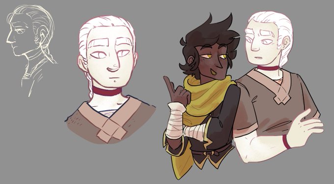 (in order; type: null pokemon conquest warrior, revisitng some older characters, an npc for a friends dnd campaign, and realizing for the first time how clip studio's non-mirrored symmetry tool works)