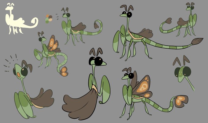 assorted fakemon designs + a drawign of a cute as hell character design by @AusmaKh
