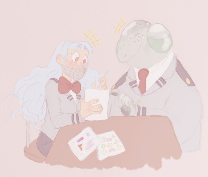 i saw @holydangyo 's bnha oc aiko and saw she likes stickers so i had to doodle her with kiyoko...