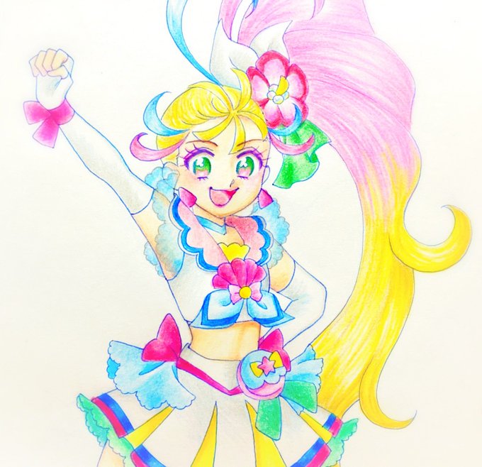 新しい色鉛筆使ってみた〜 ローラは色もかわいいなぁ〜相変わらず腰のリボン描き忘れるけどね〜 #precure