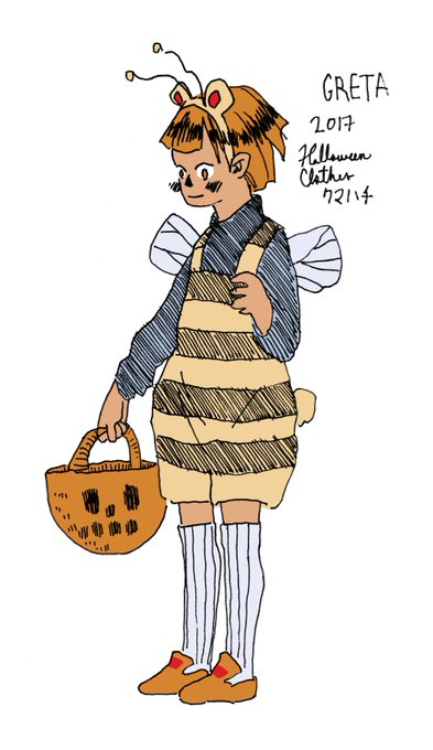 グレタのくまはちコスチュームのデザイン。