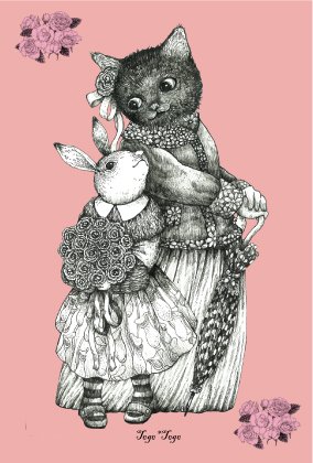 素敵な #猫の日 に 黒猫のお嬢さんにお祝いの花束をプレゼントするウサギの少女 全てのネコさんたちが幸せに暮らせますように #スーパー猫の日 #にゃんにゃんにゃんの日 #スーパーねこねこの日