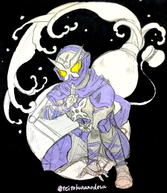 今日の絵、仮面ライダーシノビ。 1時間ドロ。
