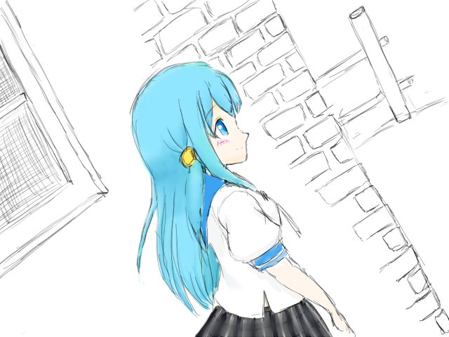 #あんガルファンアート ってことでつゆりちゃん描きました。この角の所で転校生君とぶつかるんだろうな。