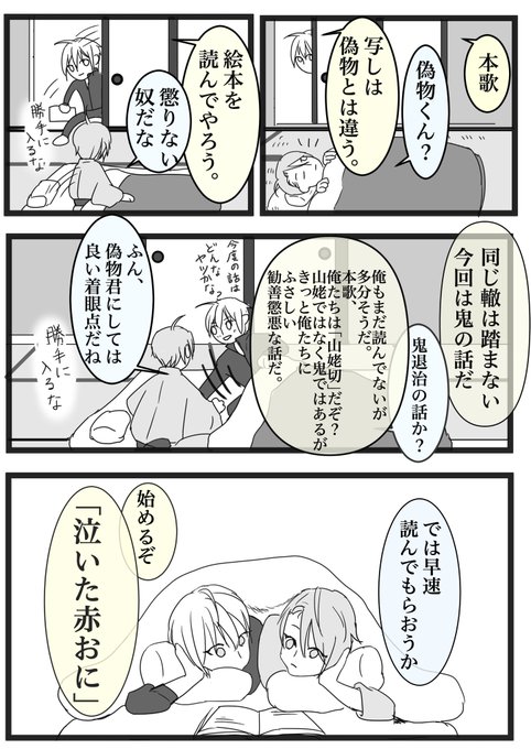 長義が本丸に来たとき、山姥切国広にどう紹介するかは、ステ本丸初め、各本丸で刀達や主の頭を悩ませたと思うのですが、弊本丸はこれで乗り切りました。 #山姥切国広 #山姥切長義