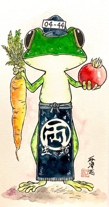 突発的に描いた両生類青果店の大将