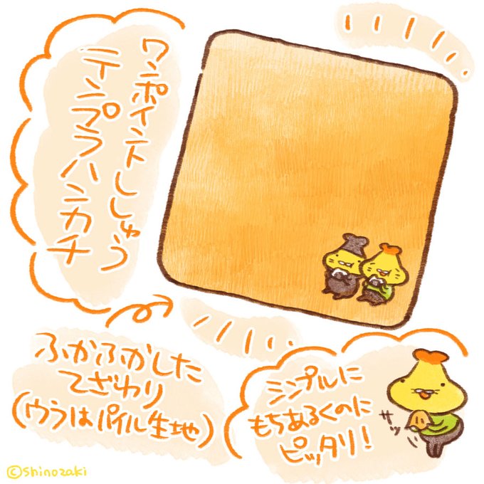 ちょっとポッケに入れておくのにちょうどいいミニサイズで、テンプラがワンポイントで刺繍されています!表はふわふわした感じで、裏はパイルになっています。シンプルにテンプラを持ち歩きたい人にぴったり!