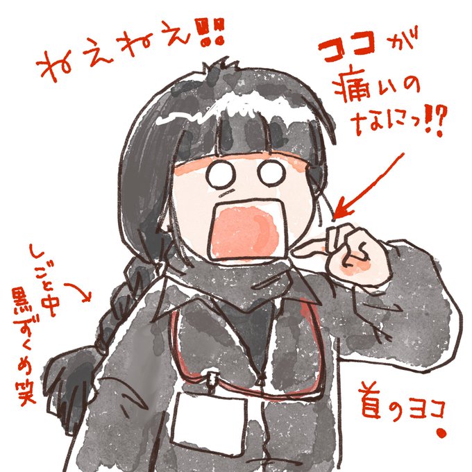 たまに中の人自画像 割と可愛げに描いてしまうけど(リアルに寄せたら見た人が不快だからww) こういうかわいげのない絵の時は似てると思う(爆)♪ で首の横が痛い 寝違え?かな?