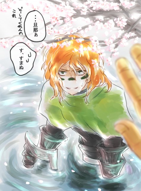 エテリさんからちくわという名のバトン受け取りました! とっても濃密な幸佐の後にこれ幸佐…かなあ?って絵ですが…佐助を濡らしたかったのでw #春の幸佐祭り
